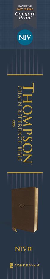 The NIV Thompson Chain-Reference Bible is printed in Zondervan’s exclusive NIV Comfort Print® typeface for easy reading. Expertly designed specifically to be used for the New International Version (NIV) text, Comfort Print offers an easier reading experience that complements the most widely read modern-English Bible translation. It also features a fresh, two-color design that preserves the original look of the chain-reference system, while making each page cleaner and easier to read.